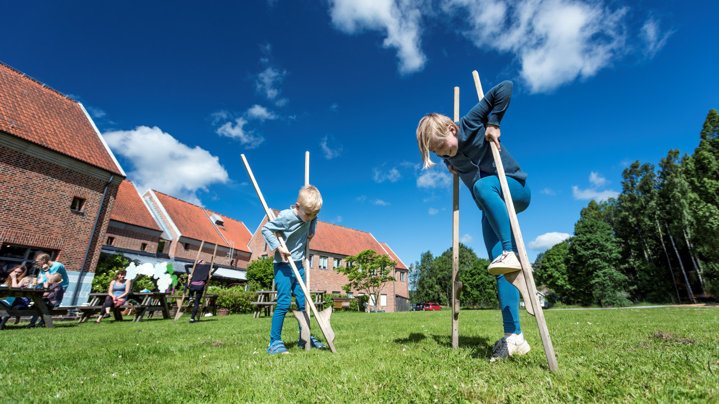Bakom museet finns en vacker örtagård och en härlig gräsmatta som väl anpassar sig för utomhusaktiviteter. Grillplats finns. Museet lånar ut uteleksaker för medeltida lekar och spel. Ett alternativ då man är flera klasser som delar buss. Utan avgift.
